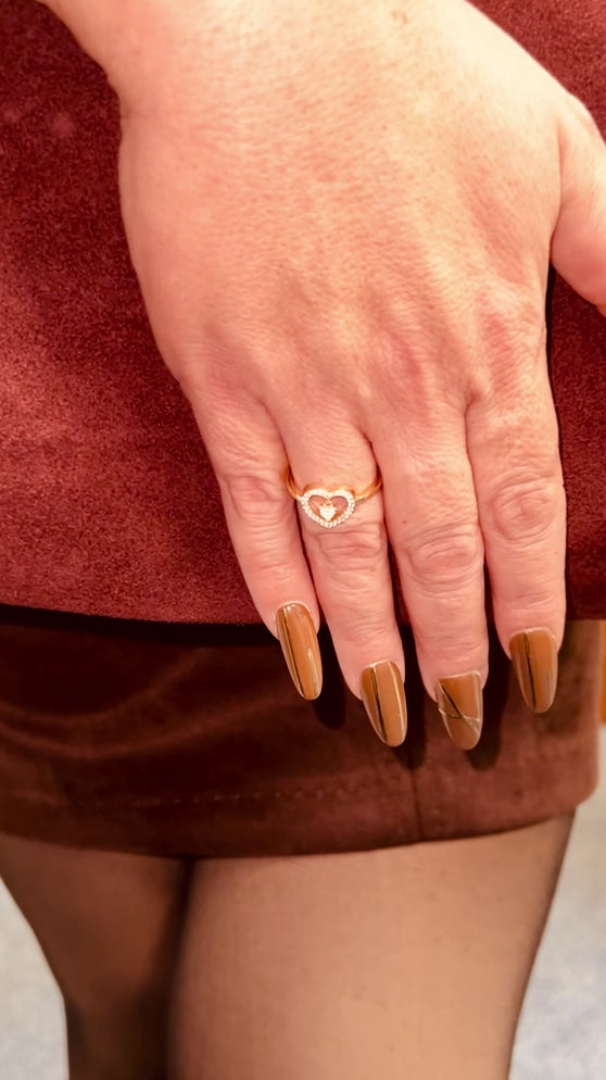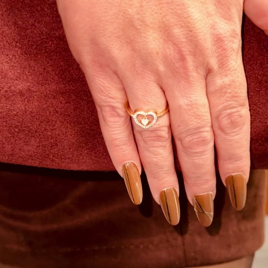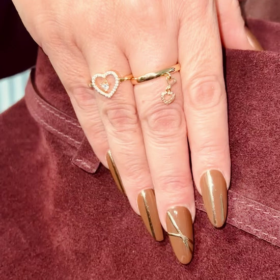 Promise, elegant and timeless, this gold ring features a dazzling central diamond with a delicate, dangly diamond charm. Its graceful design adds movement and sparkle, making it a stunning statement of sophistication. Not sure about your ring size? Check our size guide before ordering.